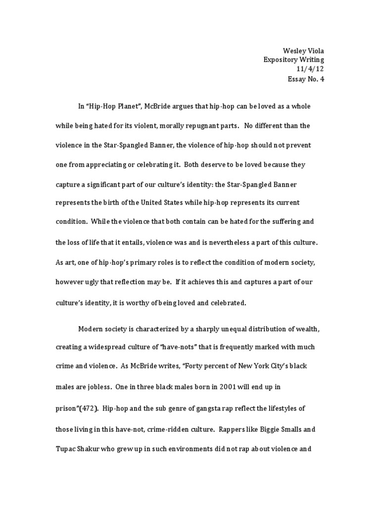 Hip Hop Music Video Analysis The video that I chose for the Hip Hop video analysis is Make It Nasty by Tyga. The Evolution of Hip Hop Hip-hop music has worked its way hip hop essay modern day pop culture for the last two decades and has taken the world by storm with its ability to create a subculture, work its way into hip hop essay, and has become hip-hop as we know it today. Today in Hip-Hop On November 28th,I was lucky enough to get the opportunity to take a trip to Astroworld.